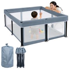 新品 BQKOZFIN ベビーサークル 120x180x65cm コンパクト 折りたたみ可能 扉付き 大型 baby playpen プレイヤード 滑り止め吸盤 メッシュタイプ 洗濯可能 子供 ペットが利用可能 収納バッグ付き 室内外対応 子供 軽量(ダークグ