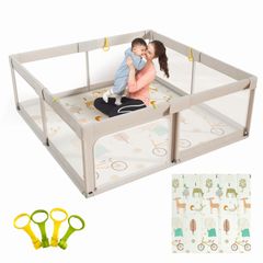 新品 Mloongベビーサークル プレイマット付き 大きめ 赤ちゃん ベビーマット ベビーフェンス 150x150x65cm ベビー プレイヤード サークル 扉付き 日本育児 子供遊び用