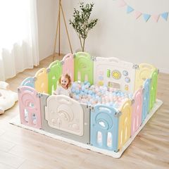 マルチカラー 出産祝い プレゼント 子供ゲート プレイヤード キッズパーテーション ベビーフェンス 組立簡単 ドア付き 14枚セット おもちゃパネル 高さ62cm サークル 赤ちゃん 大きめ 人気 折畳み ベビーサークル Castle Cloud Fortel