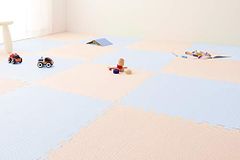 リコメン堂 ジョイントマット 大判 60cm 厚み10mm 32枚 6畳相当 パズルマット 子供部屋 赤ちゃん 防音 保温 床暖房対応 アイボリー×アクアブルー★m