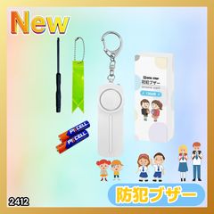 #2412 防犯ブザー ホワイト 1個 大音量 女性 小学 LEDライト 防水 130db 電池付き 反射板 キーホルダー 反射板テープ ※北海道、沖縄本島、沖縄の離島、その他離島へは別途配送料有り