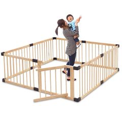 【在庫セール】RiZKiZ 木製ベビーサークル 167cm×167cm×55cm 8枚セット 大きさ、形組み換え可能 簡単設置 【ナチュラル/ドア付きタイプ】 1