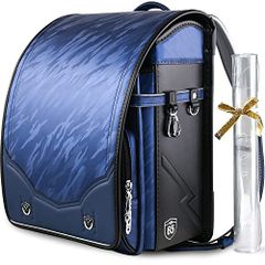 【新品】ランドセル 男の子 小学生 通学カバン カブセオリジナル 迷彩柄 コントラスト配色 大容量 A4フラットファイル対応 撥水加工 自動ロック 透明ランドセルカバー進呈 6年保証付き (ネイビー+ブラック) 3fb69ab7
