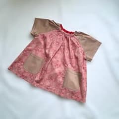 【12/16までの出品】110サイズ*ピンク花柄半袖スモック