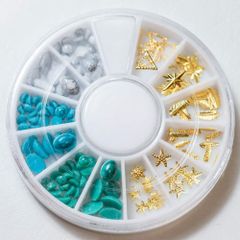 【迅速発送】夏 マリン アソートパック【パールストーン通販MK】アソート セット ケース付 ターコイズ ストーン(グリーン・ブルー・ホワイト)スタッズ メタルパーツ(ヒトデ・フェザー 羽・光 きらきら・三角 ぎざぎざ)厳選 パーツ 手作りアクセサリー ネイル