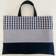 紺系チェックストライプボーダー レッスンバッグ