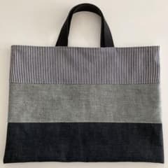 ストライプデニムボーダー レッスンバッグ