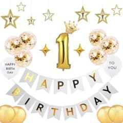 誕生日 1歳 飾り付け ガーランド 風船 バルーン 星 金色