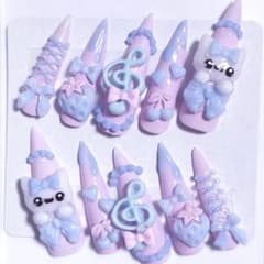 平成女児 地雷系 量産型 ネイルチップ 水色 ぴんく
