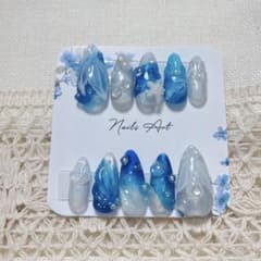 青 アーモンド 海 夏 綺麗 ちゅるん ネイルチップ 白 人魚 マグネット