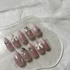 桃チークネイフレンチガーリー ワンホン リボン y2k 量産型 韓国ネイル