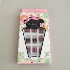サロン品質 ネイルチップ 24個入り つけ爪 ハート リボン ドット