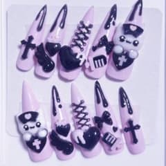 地雷系 量産型 ネイルチップ ナース くろ ぴんく