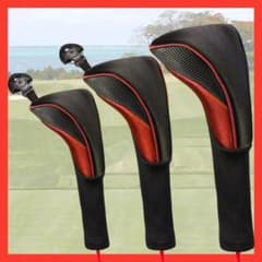 ヘッドカバー 3点セット 赤 レッド ゴルフ ドライバー 番手タグ付き 020