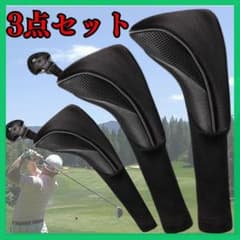 ヘッドカバー 3点セット ブラック ゴルフクラブ ドライバー 番手タグ付き