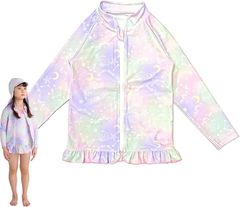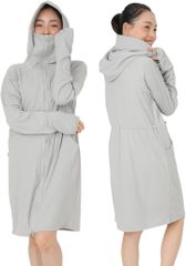 SPRIMM ラッシュガード レディース 丈長め 顔まで ジップ つば付き 日焼け防止 速乾 通気性 ロング 長袖 UVカット 体型カバー 水着 フード (グレー, M)