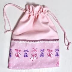 バレエ柄 巾着袋 サテン生地 シューズ入れ レッスンバッグ トゥシューズ ピンク