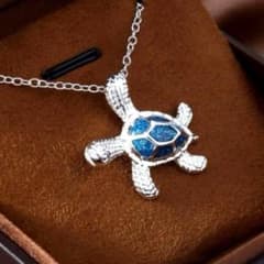 ホヌのネックレス♡シルバー♡ハワイアンジュエリー♡フラダンス☆ブルー青 亀 開運
