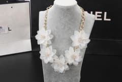 大ぶりフラワーネックレス♡ホワイト&ゴールド♡白花♡ウエディング フラダンス