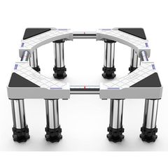 洗濯機 台 DEWEL 冷蔵庫 置き台 嵩上げ 昇降可能 奥行/幅:43~66cm 高度調節18~20cm 耐荷重:500kg 8足円形鋼管4本式 ジャッキ付き 防振 冷蔵庫 台 異音振動軽減 防振パッド 水準器付き 日本語取扱説明書付き 1