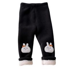 【新品】 [VNGOLERRY] ベビー 裏起毛 パンツ レギンス 冬 あったか 長ズボン ロングパンツ うさぎ 刺繍 フリース 女の子 男の子 キッズ 防寒 保温 厚手 もこもこ 防寒パンツ 黒 白 灰 80 90 100 110 120 (JP, 身長 0