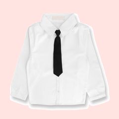 90-170cm 入学 通学 白 ワイシャツ コットン 無地 長袖 ネクタイ付 フォーマルシャツ キッズ [ビートポップス]