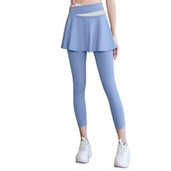 【人気商品】美脚 ストレッチ 通気 ハイウエスト トレーニング テニス スポーツ フィットネス ヨガウェア 速乾 ジム 部屋着 一体型 スパッツ 9分丈 Aライン スコート CK033 レギンス スカート付き ヨガパンツ レディース SKY] [MORGEN