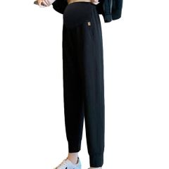 着痩せ効果 カジュアル ストレッチ 薄てと裏起毛タイプ ウエスト調整 春夏秋冬 フォーマル ブラック 妊娠服 ズボン 九分丈 マタニティパンツ [Onabebi]