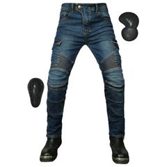新品 [RENHE] バイクパンツ メンズ ライディングパンツ 春夏秋冬 ライダースパンツ プロテクター付き バイクズボン 伸縮性 レーシングパンツ 耐磨 普段着 ストレート ブルー Sサイズ