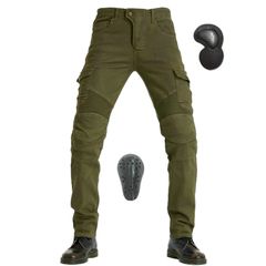 新品 ライディングパンツ メンズ バイク用パンツ 春秋 バイクズボン プロテクター付き ライダースパンツ カーゴパンツ ストレッチ素材 肌に優しい 耐磨耗性 四季通用 グリーン 2XLサイズ