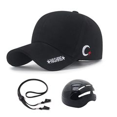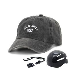 自転車用ヘルメット 帽子型 メンズ レディース (CE認証) キャップ 防災ヘルメット 夏用 アウトドア 無地 コットン おしゃれ UVカット 超軽量 通気性 耐衝撃 安全帽子 あご紐付き 頭囲52~60cm 1