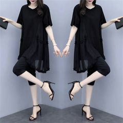 セットアップ レディース 上下セット チュニック トップス クルーネック 半袖 薄手 夏 ボトムス パンツ 通勤 おしゃれ 大人 ゆったり シンプル カジュアル 部屋着