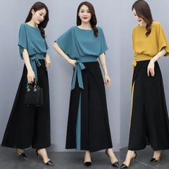 パンツ セットアップ 上下セット レディース ブラウス ワイドパンツ ガウチョパンツ 半袖 ロング丈 通勤 OL トップス ボトムス ファッション おしゃれ カジュアル 夏 大人 かわいい 上品
