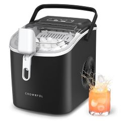 CROWNFUL 製氷機 家庭用 【高速製氷 自動洗浄機能 】 ハンドル付き氷バスケット 取り扱い簡単 2種類氷サイズ 大容量水タンク 透明窓 小型 氷つくり機 静音 自動停止 水不足提示 ポータブル アイスメーカー コンパクト 製氷器 日本語取扱説明書付き