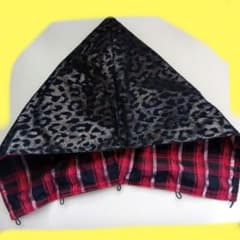 金✕黒ヒョウ柄 赤✕黒✕銀チェック リバーシブル フード 防寒フード 未使用