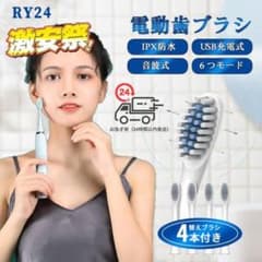電動歯ブラシ 替え歯ブラシ付 4本 黒 音波 振動 6モード USB充電 防水