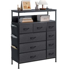 【数量限定】2段5杯 サイドポケット付き 箪笥 ローチェスト リビング収納 キャスター付き おしゃれ 収納チェスト 布製 タンス 引き出し 大容量 洋服タンス チェスト 衣類収納 北欧 シンプル WLIVE ブラック ASNG607