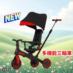 #2645 キッズ バイク 子供 三輪車 レッド 折りたたみ 1~5歳 安全シートでしっかり固定 3点式股ベルト付き 手押し棒付き 7in1 自転車 ランニングバイク ※一部地域離島別途配送料有