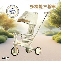 #2644 キッズ バイク 子供 三輪車 ベージュ 折りたたみ 1~5歳 安全シートでしっかり固定 3点式股ベルト付き 手押し棒付き 7in1 自転車 ランニングバイク ※一部地域離島別途配送料有