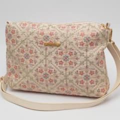 PM320 ¦ インド刺繍生地のボックス型ショルダーバッグ アイボリー ピンク