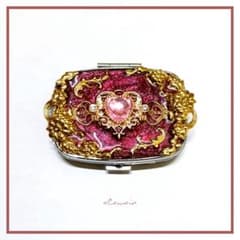 インド刺繍リボンとフェイクレザーのがま口ポーチ