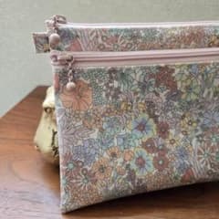 限定お値下げ♪リバティ ラミネート ダブルファスナーポーチ マーガレットアニー