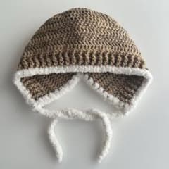 ボンネット バラクラバ ハンドメイド かぎ針編み キャメル 大きめ