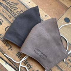 ハンドメイド布マスク★9946 大人用 綿麻 ブラウン 茶色 ブラック 黒系