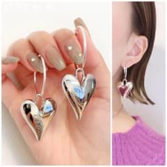 1021 シルバーフープピアス ビッグハート お洒落 大ぶり