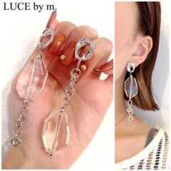 990 シルバー ツイストフープ Uチェーン クリアドロップ お洒落 大人可愛い