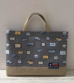 AMI様専用 ワーゲン車ストライプ柄レッスンバック 裏生地ポケット付ハンドメイド
