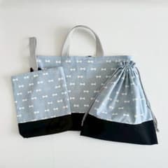 入園入学セット 3点 レッスンバッグ上履き袋巾着袋 ハンドメイド 水色リボン