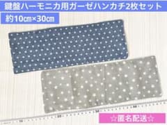 ハンドメイド ガーゼハンカチ 鍵盤ハーモニカ用 日本製ダブルガーゼ2枚セット星柄