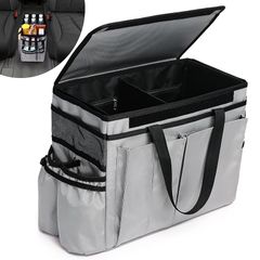 Topshine 車用 トランク 収納ボックス 大容量 折り畳み キャンプ ラゲッジルーム 蓋付き 小物整理 仕切り コンソールボックス アウトドア 車載 転落防止 容量25L 15個のポケット付き 滑り止め (グレー) 1